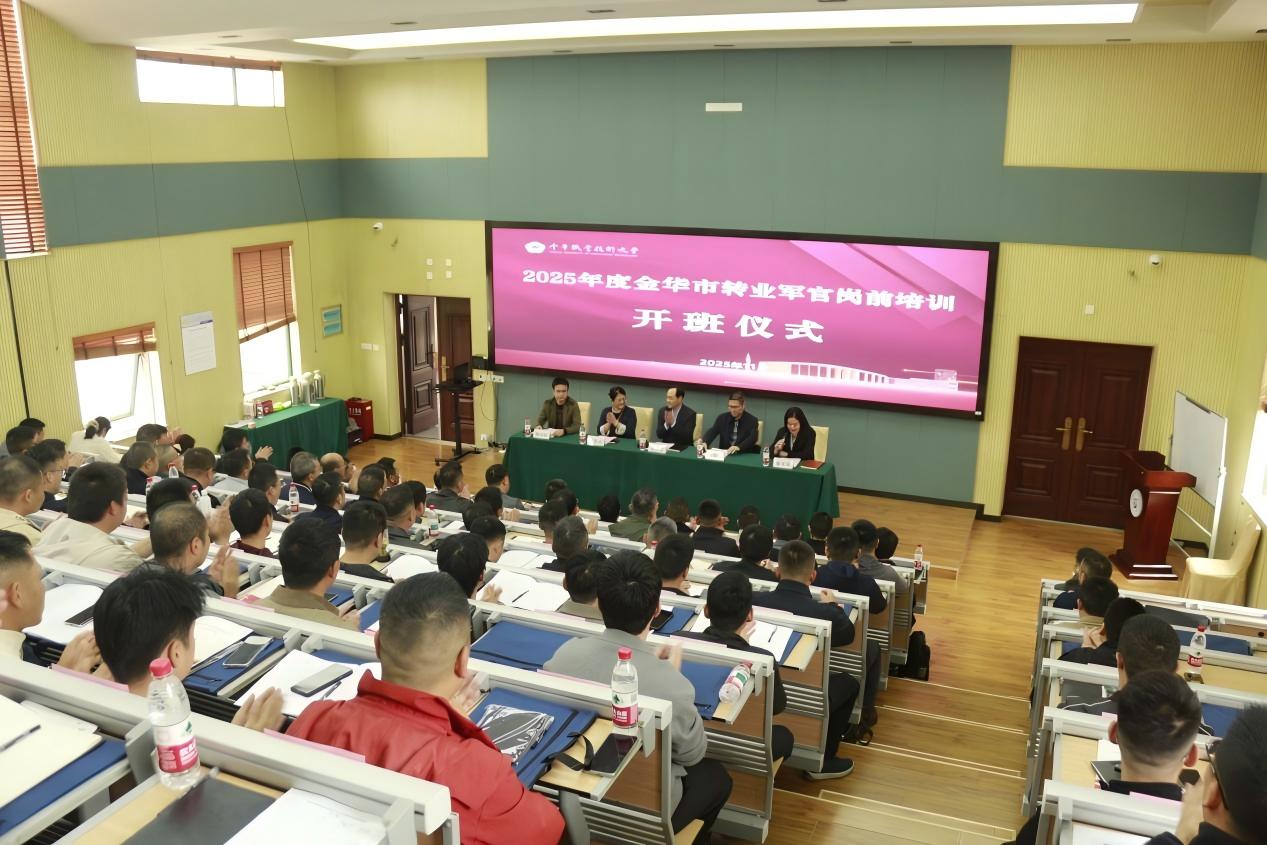11月10日,2025年度金华市转业军官岗前培训开班仪式在文旅学院举行,金华市退役军人事务局党组书记、局长苏荣兵,党组成员、副局长陈向阳,学校党委委员、纪委书记姜建忠,继续教育处、文旅学院负责人,金华各县(市、区)95名转业军官参加。