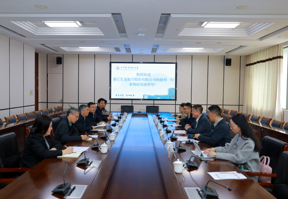 11月11日,浙江长龙航空股份有限公司维修总裁杨穗利一行来校走访交流。校长梁克东,党委副书记劳虓虓,发规处、就业指导处、航空工程学院、文旅学院等相关负责人参加座谈。