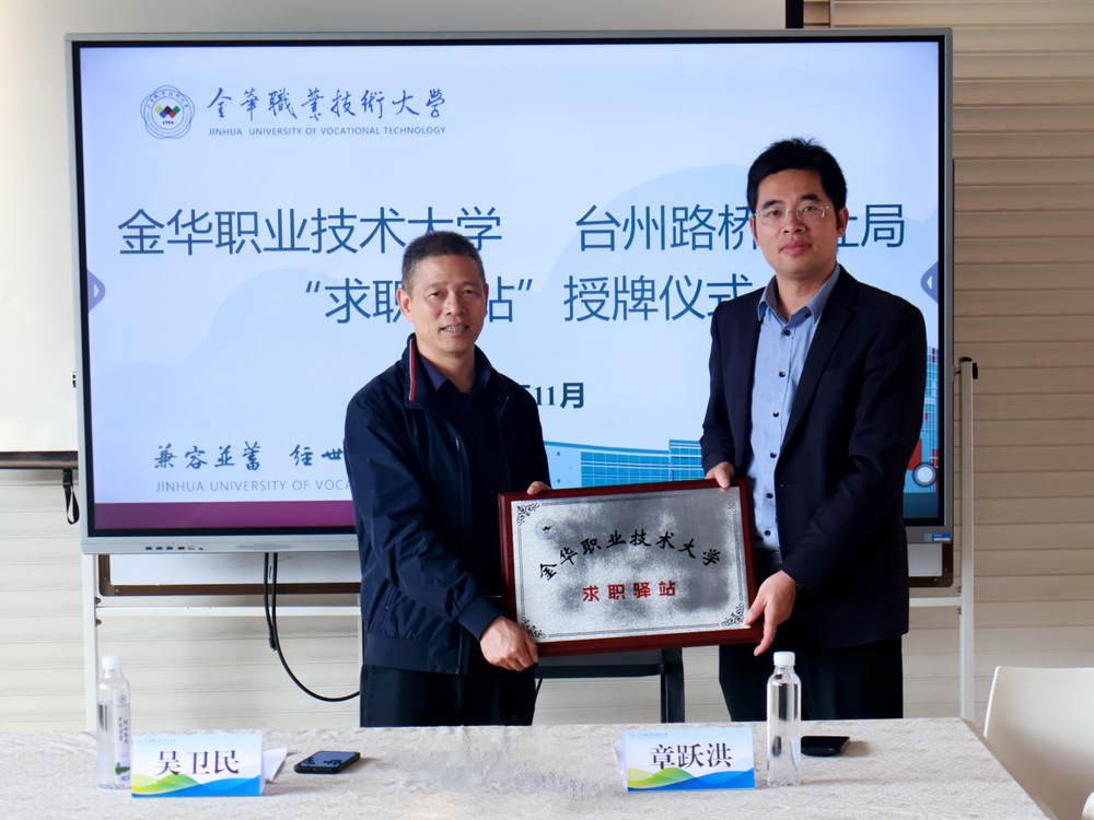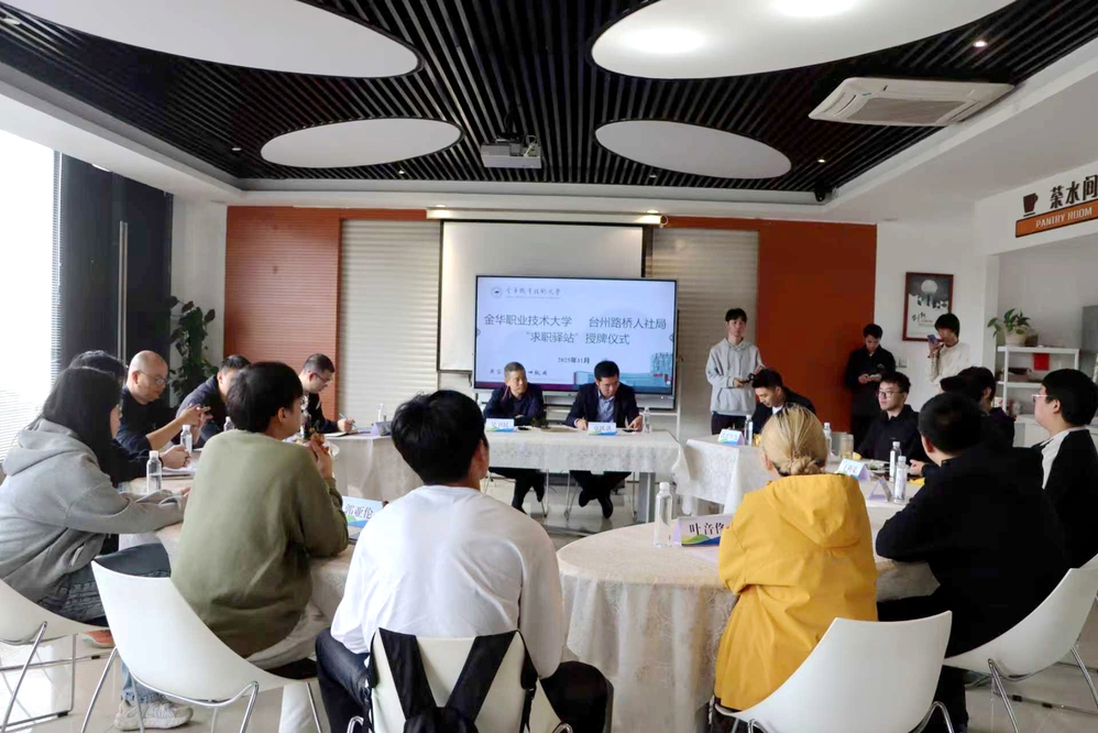 会上举行了毕业生“求职驿站”授牌仪式,标志着双方全方位合作正式开启新篇章。此次“求职驿站”的搭建将聚焦台州路桥区域重点产业人才需求,整合校地双方资源,在产教深度融合、实习基地建设、人才培养输送、企业社会培训等方面达成初步共识。