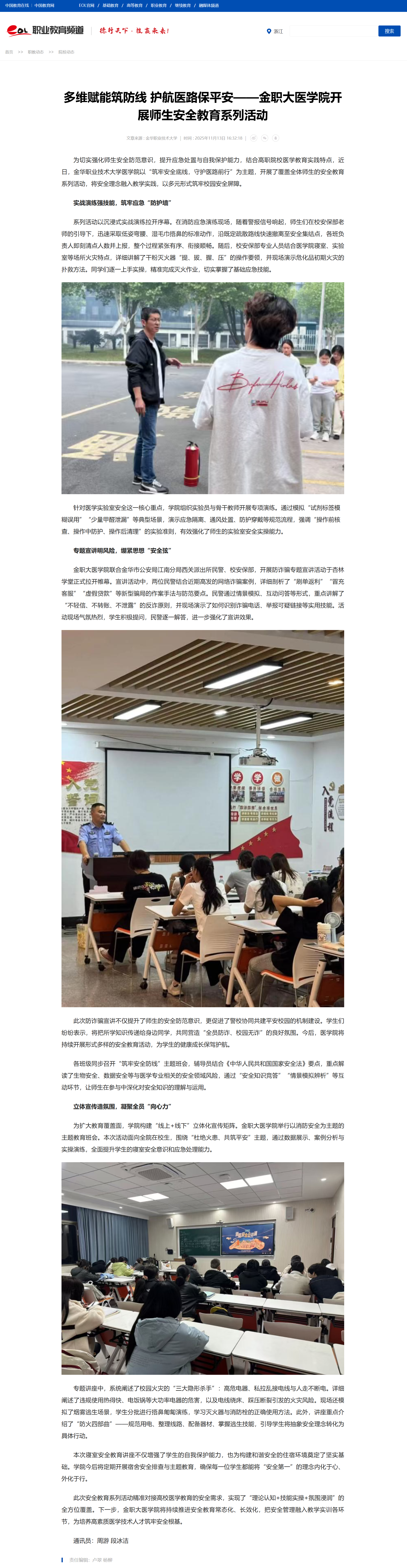 中国教育在线:多维赋能筑防线 护航医路保平安——金职大医学院开展师生安全教育系列活动