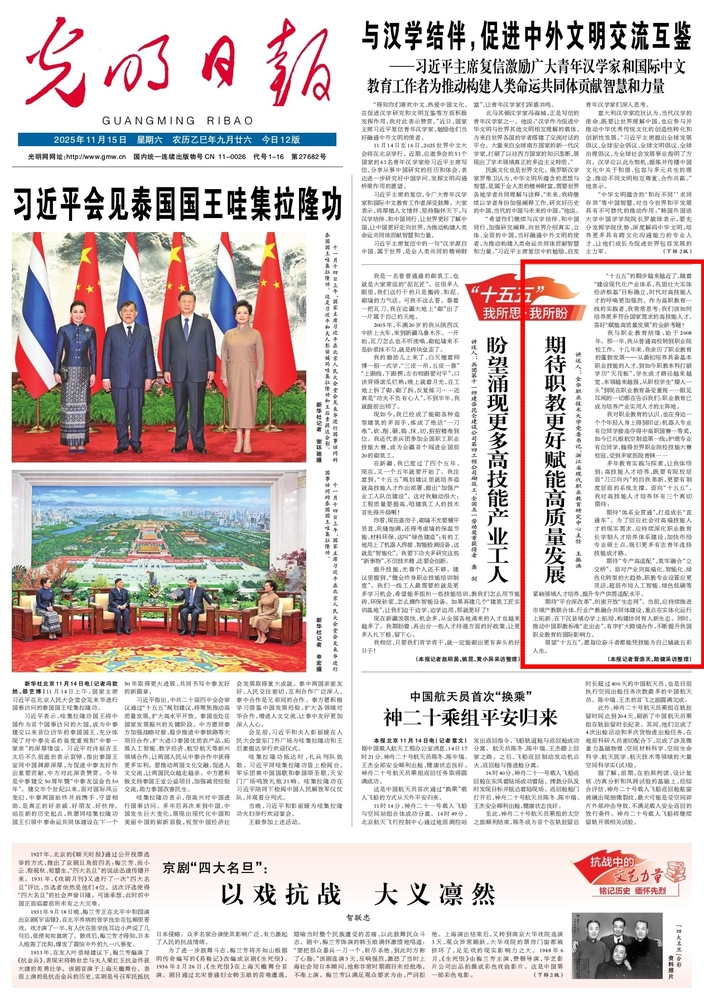 金华职业技术大学党委书记王振洪在《光明日报》(2025年11月15日 01版:头版)发表了关于《【“十五五”我所思·我所盼】期待职教更好赋能高质量发展》的文章,全文如下: