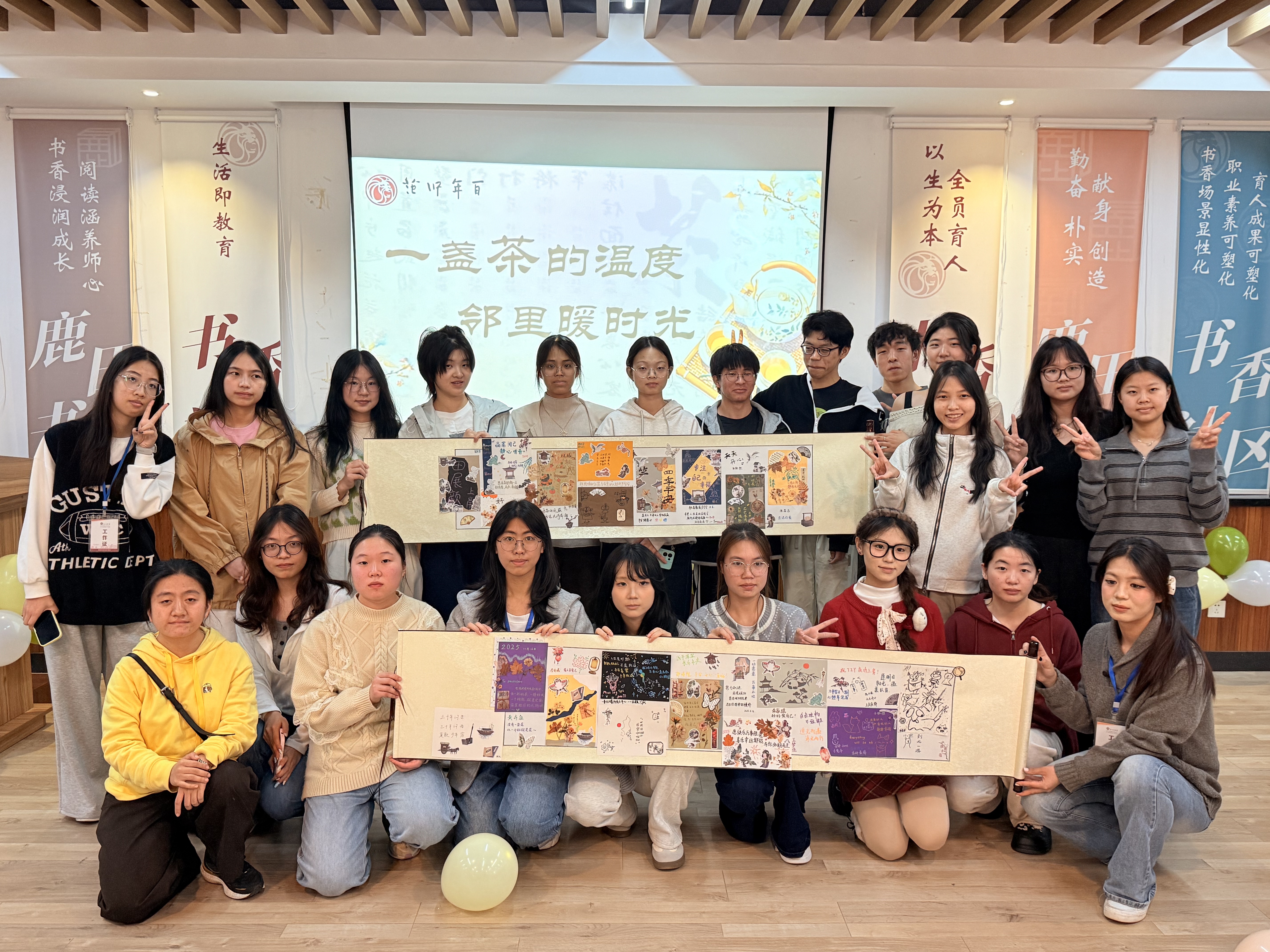 在邻里茶话会中,同学们在“解忧便笺”上写出关于学业与生活中的困惑,彼此倾听、相互谏言;在手作针织茶垫中,同学们将毛线化身为传递情谊的纽带,一针一线编织出浓浓的同学情谊;在拼贴时光卷轴中,同学们用彩笔描绘校园美好瞬间,用贴纸拼接理想生活图景;在互换盲盒环节,同学们将精心准备的祝福卡、文创礼物等,以盲盒的形式随机互赠,传递惊喜与祝福。