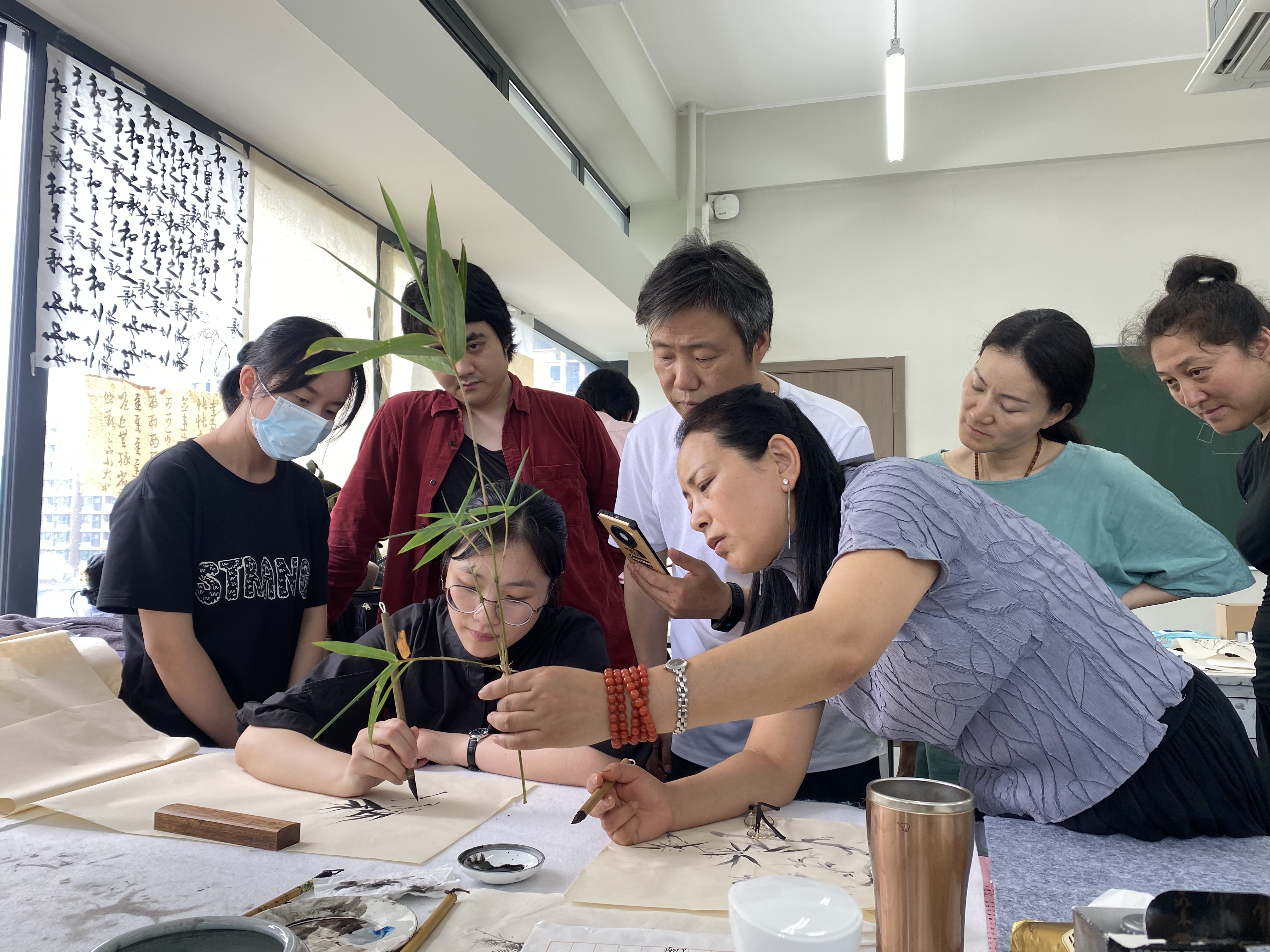 她的课堂风格并不“学院派”。她习惯一边示范,一边讲故事——讲宋画里“清润之气”的来历,讲潘天寿如何以大笔大墨重构花鸟画格局,也讲她自己跟着导师写生时遇到的雨、风、海和突然飞起的丹顶鹤。学生们说,她的课“听着轻松、学着过瘾”。而在课后,她一如既往保持着国美人对作品的自我要求——常在教室里一笔一笔重画课堂示范,直到找到“那一口气”。
