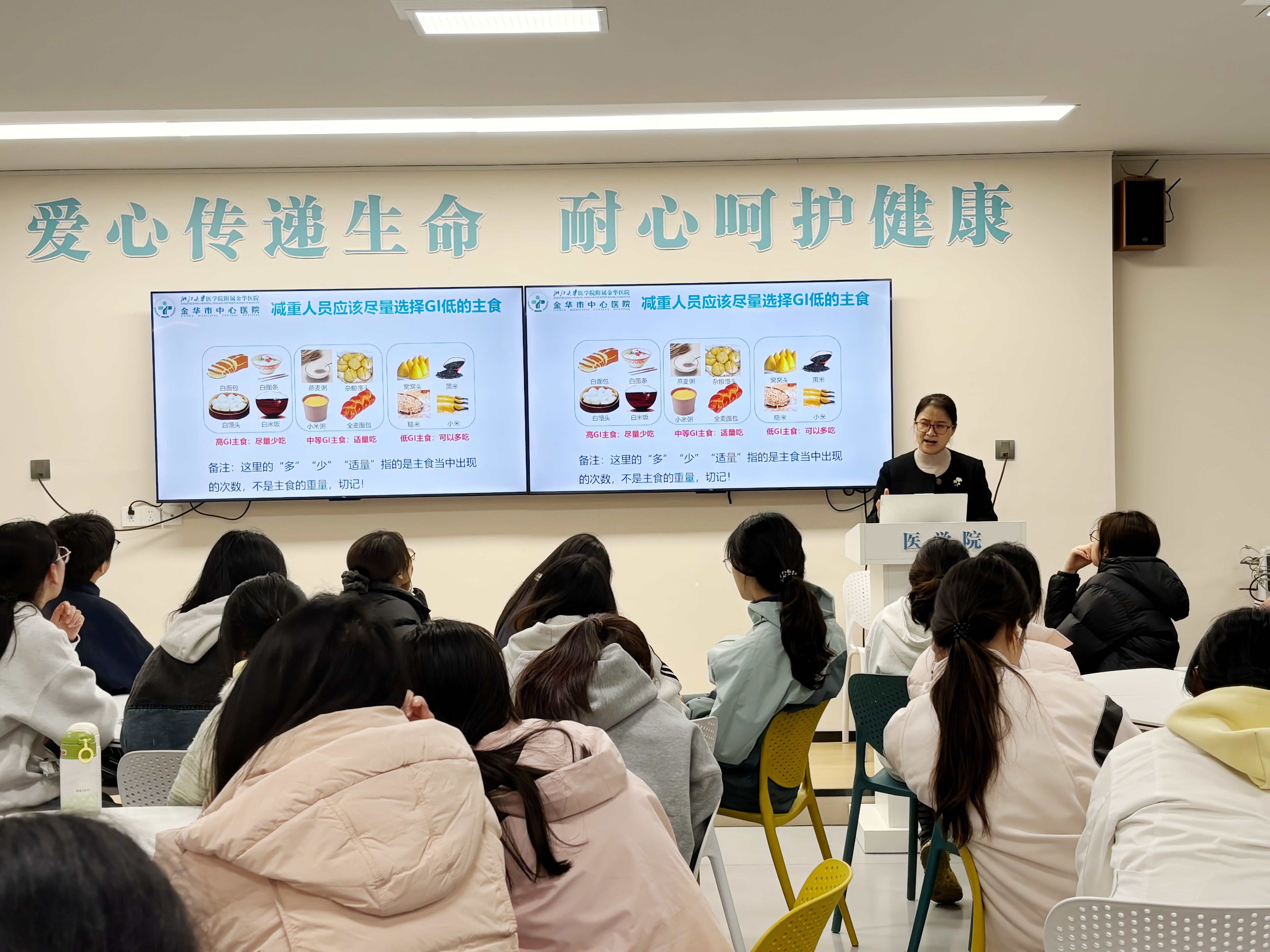 当“健康减重”成为校园与临床共同关注的生活课题,专业的营养指导如何链接校园日常与医学实践。11月18日,医学院“百名专家名医讲坛”再度开讲,此次讲座特邀金华市中心医院临床营养科主任金惠仙,她以《体重管理进万家——走进金华职业技术大学》为题,为师生带来了一场兼具专业性与实用性的健康盛宴。