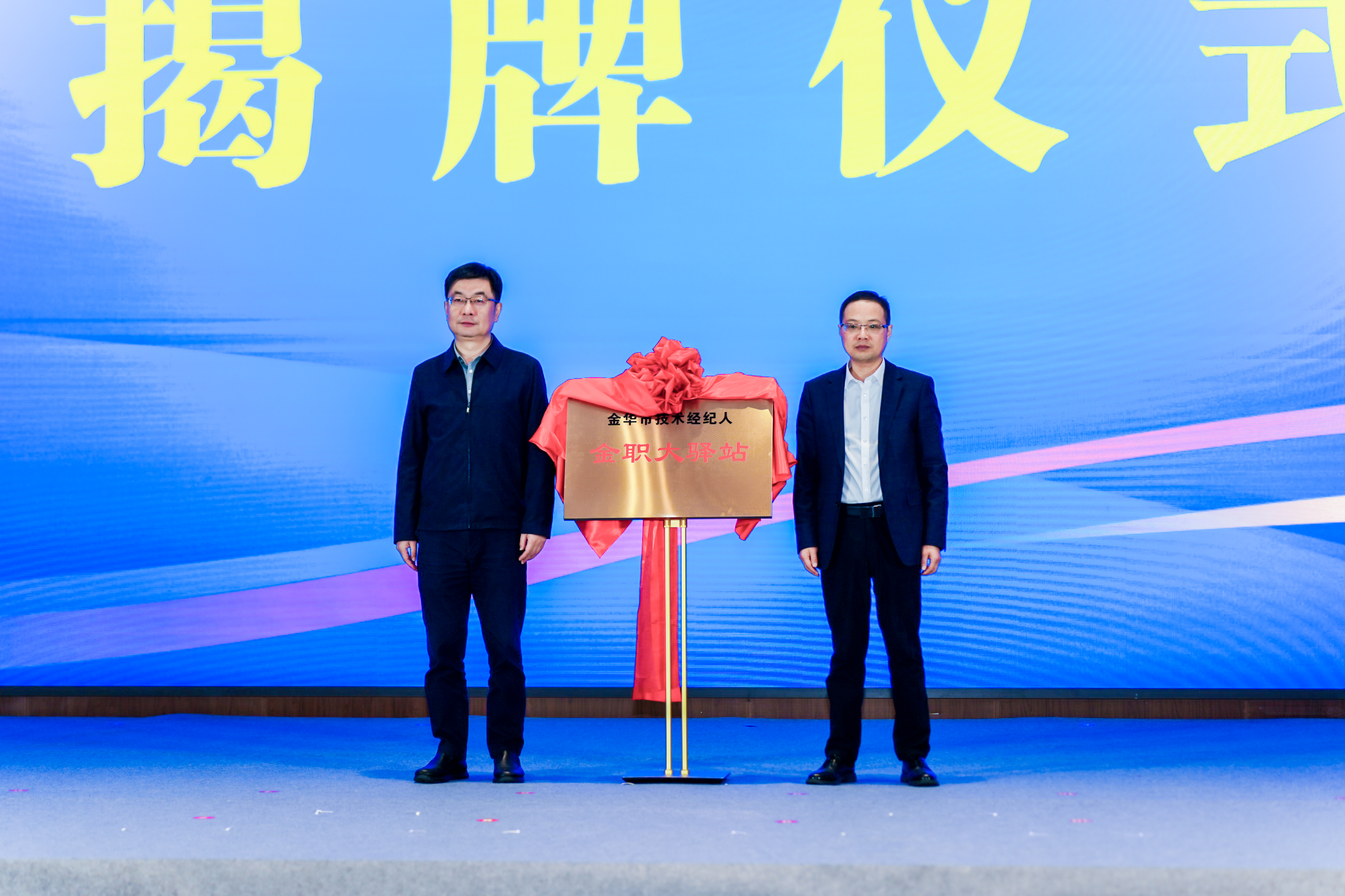 开幕会上,金华市科技局局长与学校科技处负责人共同为“金华市技术经纪人金职大驿站”揭牌,标志着金华市首家技术经纪人驿站正式成立。