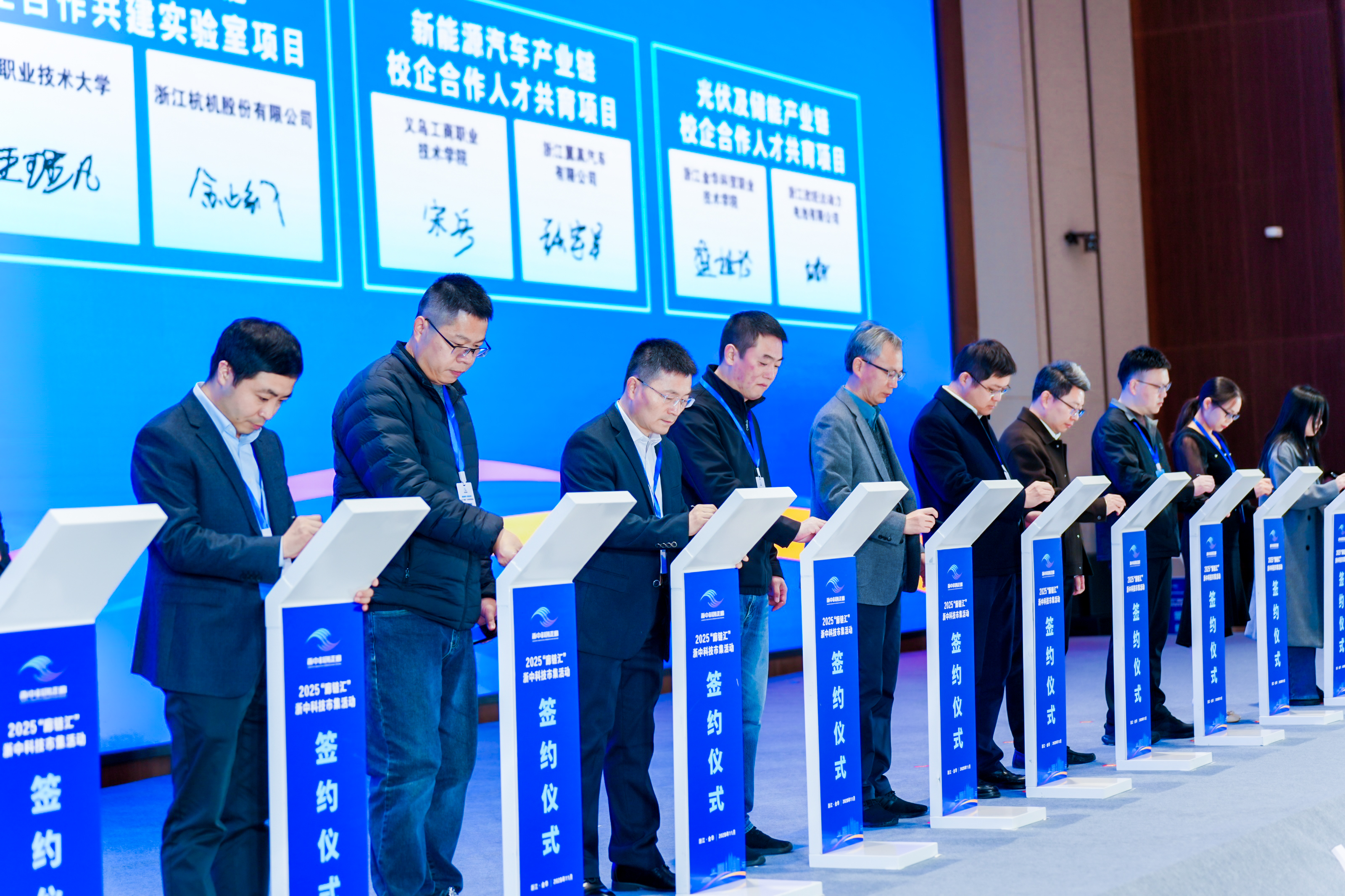 会上,学校与工业机床产业链龙头企业浙江杭机股份有限公司共建联合实验室项目、与金华市晨茜物联科技有限公司产学研合作“智能体多平台异构协同系统研发”项目进行了签约。信息工程学院刘子坚团队的研发成果《空地协同智能巡检系统Skylink X01》在人工智能展区进行展示。下一步,学校将持续深化“高校+平台+企业+产业链”结对合作机制,推进“两新”深度融合,为金华产业发展作出更多的“金职贡献”。
