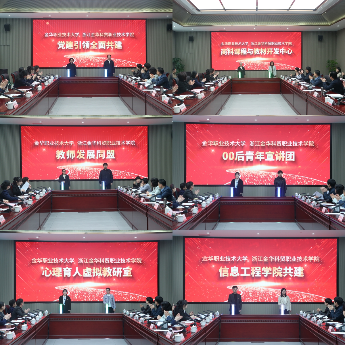 会上,举行了党建与事业发展深度融合结对共建仪式。双方党委书记和相关职能部门负责人共同启动组织联建、专业建设、队伍培养、协同育人、二级学院联建等多个层面的共建项目。会后,与会人员一同参观了金职大信息工程学院省级众创空间IT智慧谷和AI创客工坊。