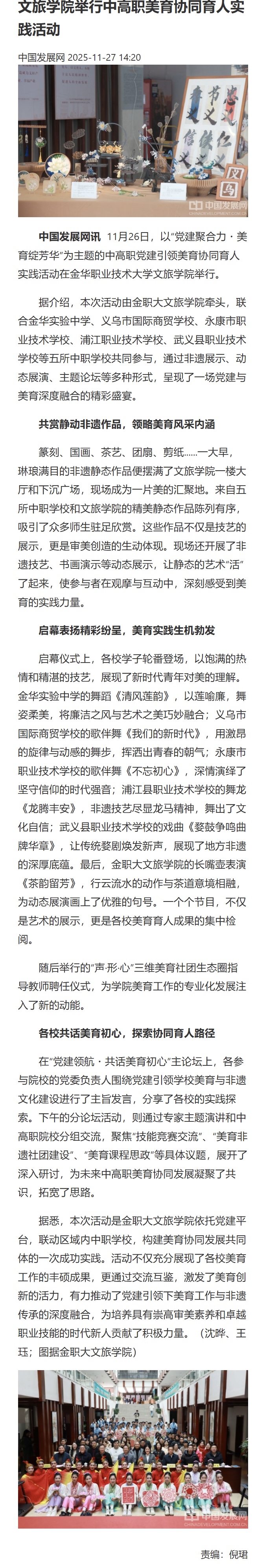 中国发展网:文旅学院举行中高职美育协同育人实践活动