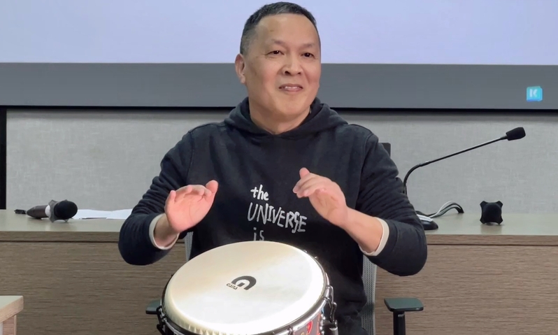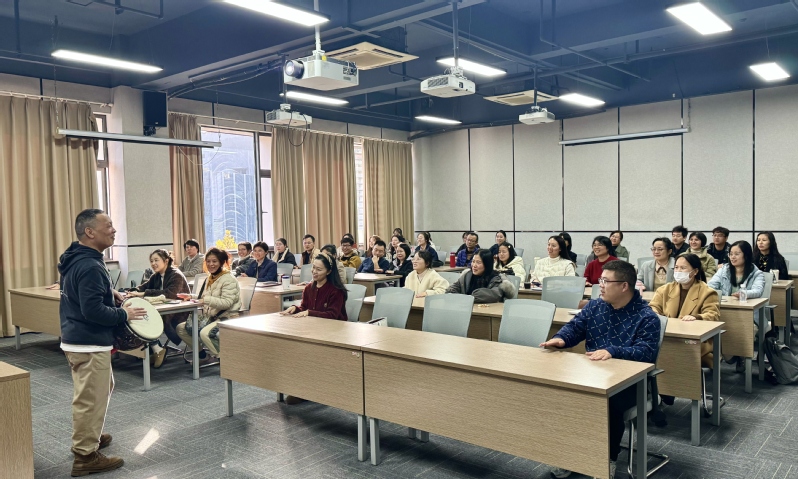 讲座尾声,杨松权老师即兴拍响非洲鼓,以充满生命力的节奏引领全场教师共同律动。在鼓点的交融与共振中,教师们亲身感受到音乐带来的释放与连接,为这场“音乐健康之旅”画上了一个温暖而有力的休止符。