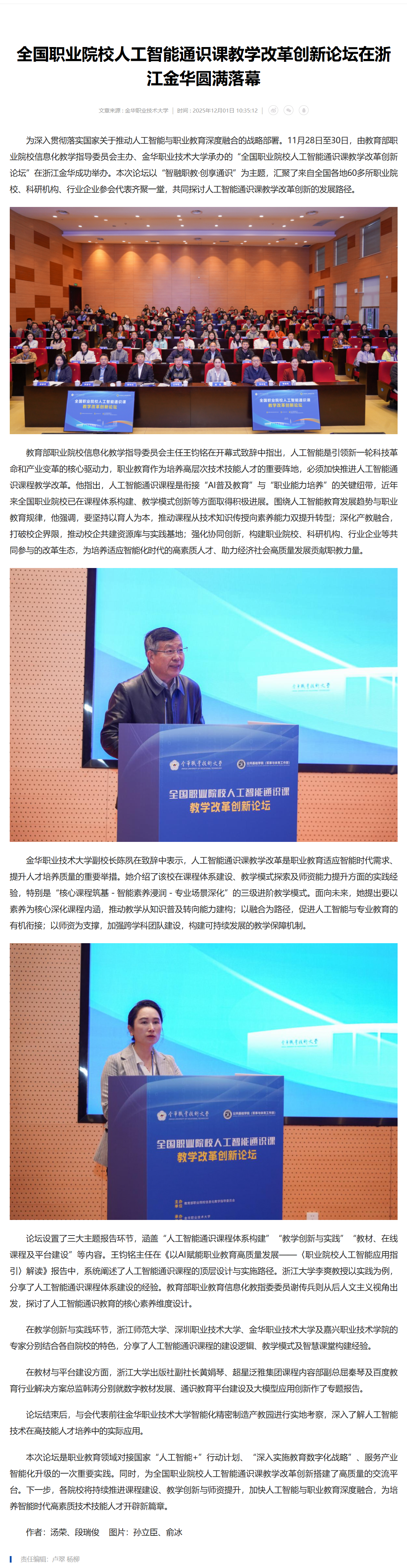 中国教育在线:全国职业院校人工智能通识课教学改革创新论坛在浙江金华圆满落幕