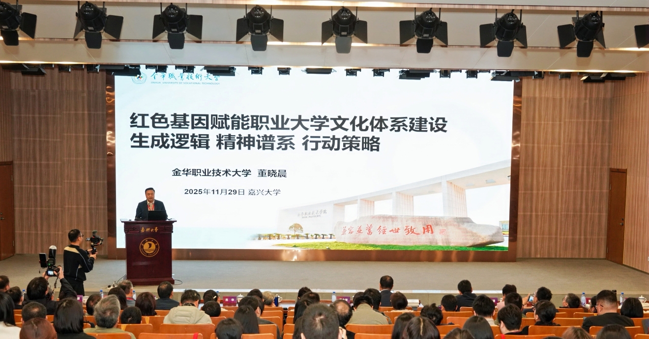 中国高等教育学会大学文化研究分会副理事长、金华职业技术大学党委委员、组织部长董晓晨应邀参会并作了题为《红色基因赋能职业大学文化体系建设生成逻辑、精神谱系与行动策略》的主旨报告,并主持分论坛“红色文化的艺术表达与育人功能”。