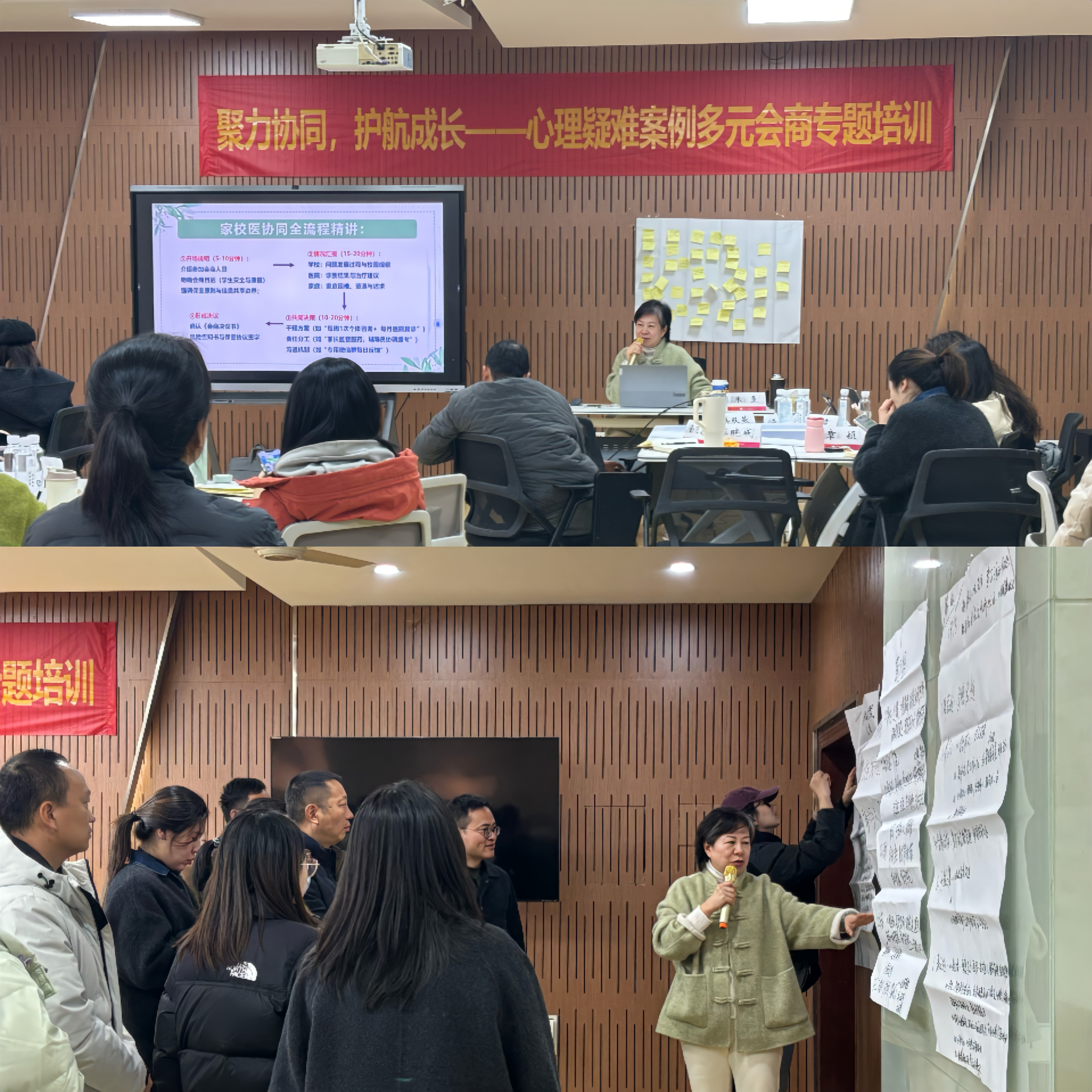 在互动环节,参训人员通过角色扮演,围绕实际工作中遇到的疑难案例展开深入交流。无论是站在辅导员角度提供专业建议,还是代入家长角色思考家庭支持,现场氛围热烈,形成了“跨界研讨、精准献策”的良好氛围。大家纷纷表示,此次培训突破了单一角色的局限,明确了各方在会商中的职责定位,提升了协同干预的能力,为今后应对复杂心理问题提供了扎实支撑。