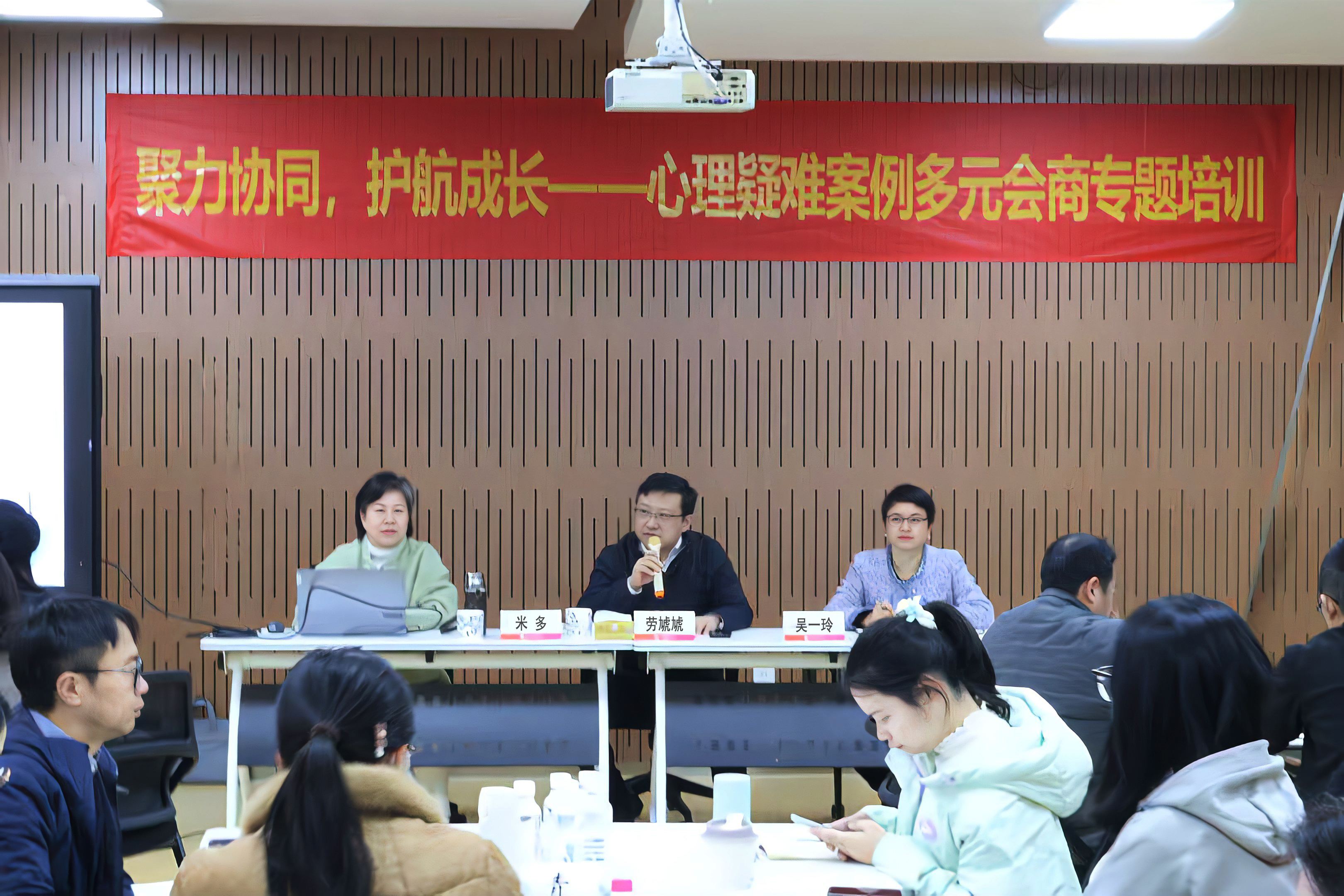 为织密校园心理健康防护网,提升心理疑难案例处置的专业化、协同化水平,12月5日,金职大组织学工骨干队伍开展“心理疑难案例多元会商”专题培训。校党委副书记劳虓虓出席培训并作开班动员,心理中心负责人、各学院分管学生工作领导及学工办主任、心理辅导员、心理中心全体人员共50余人参加培训。