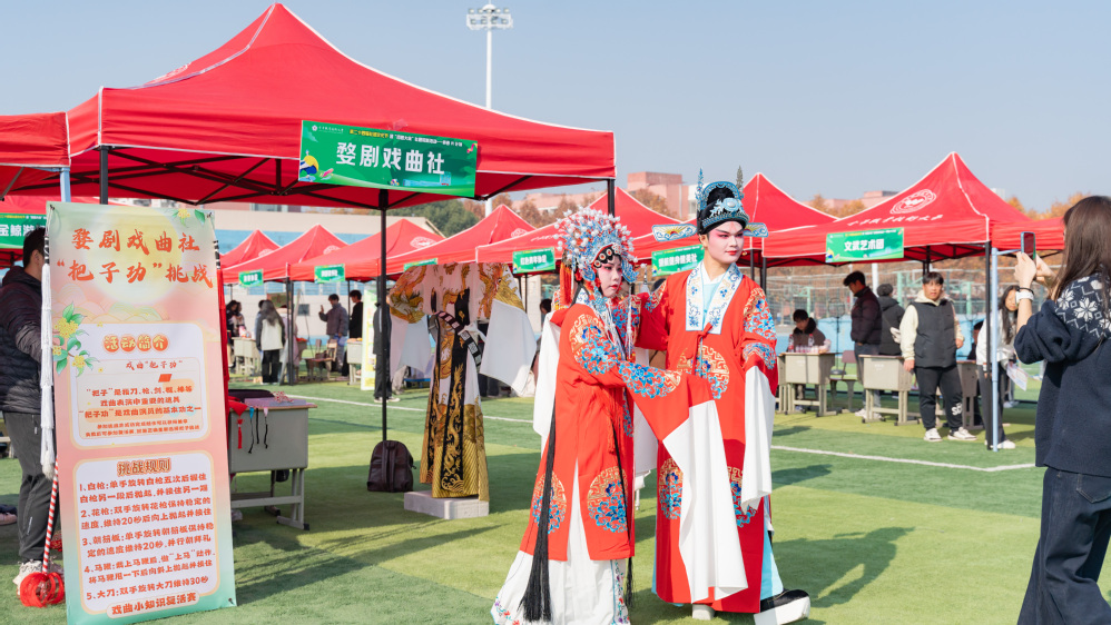 学校共建单位浙江金华科贸职业技术学院的学生社团也应邀来校展示,两校学子携手展示才艺,展现出良好的精神风貌与校际交流的活跃氛围。此外,“兴趣盲盒”体验站、“创意工坊”等互动区域让同学们在亲身参与中感受社团特色,各类沉浸式体验活动持续点燃现场热情。