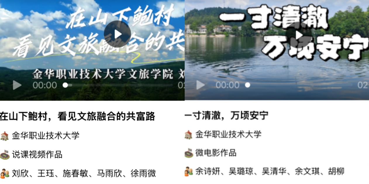 近日,全省“我和我的绿水青山”大学生光影故事汇及优秀案例征集活动结果正式揭晓。金华职业技术大学报送的三部作品脱颖而出,分别斩获三个类别的三项奖项,展现了学校在“两山”理念育人实践中的丰硕成果。