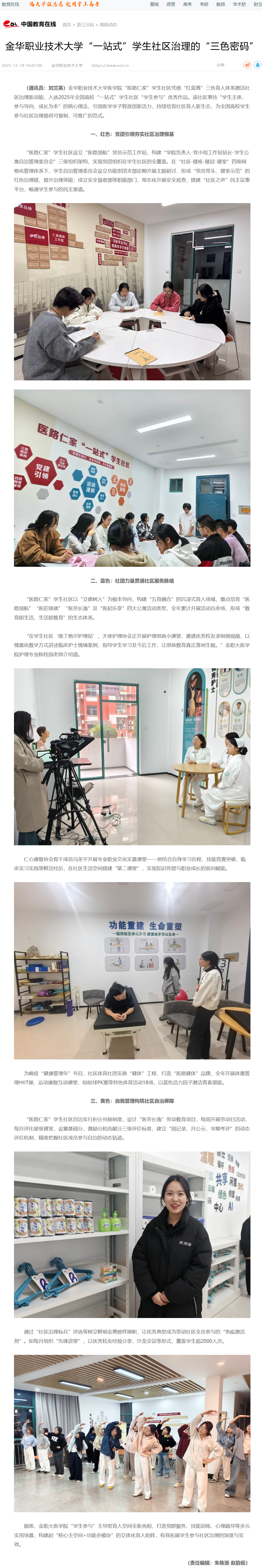 中国教育在线:金华职业技术大学“一站式”学生社区治理的“三色密码”