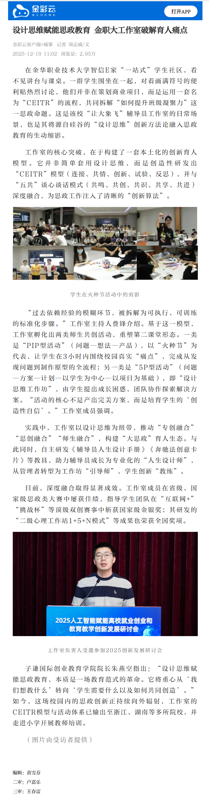 金彩云客户端:设计思维赋能思政教育 金职大工作室破解育人痛点