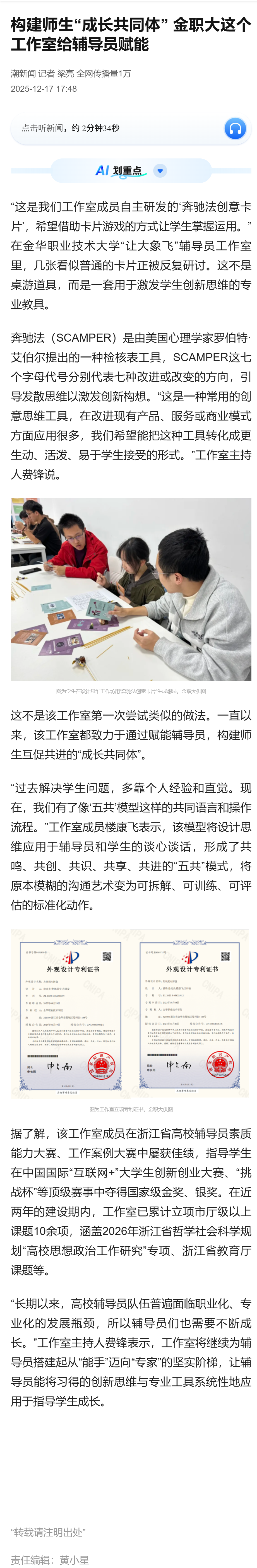 潮新闻:构建师生“成长共同体” 金职大这个工作室给辅导员赋能