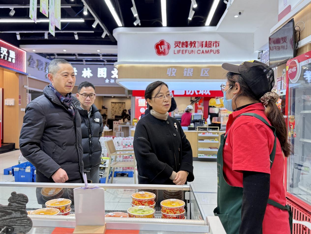 在食品安全方面,卢小珍一行检查了校园配送中心、龙北2校园外卖配送点和稻花香餐厅,并详细询问了节日期间的食材储备、食品卫生安全及配送点的管理等情况,强调要严把食材关口,加强全过程监管,守护师生“舌尖上的安全”。