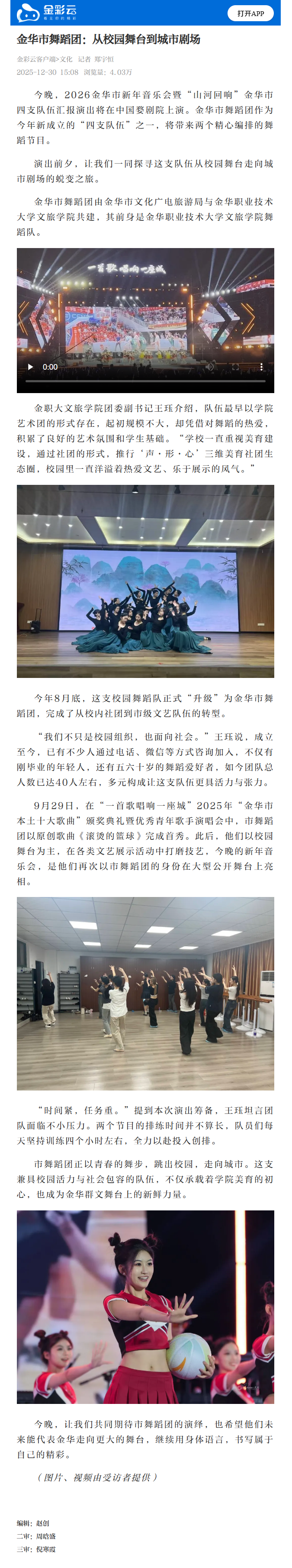金彩云客户端:金华市舞蹈团:从校园舞台到城市剧场