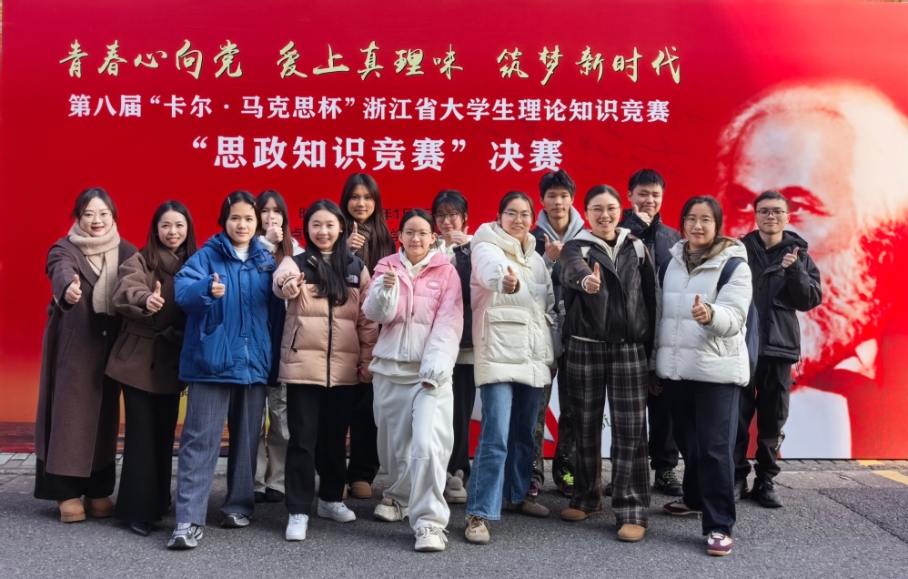 “卡尔·马克思杯”浙江省大学生理论知识竞赛是由中共浙江省委宣传部、中共浙江省委教育工委、浙江日报报业集团等单位共同主办的省级A类学科竞赛。竞赛以“青春心向党 爱上真理味 筑梦新时代”为主题,设立“思政知识竞赛”与“大学生讲思政课”两大类别,历经预热赛、初赛、复赛、决赛四个阶段,历时两个多月,吸引了全省105所高校近50万名大学生参与。