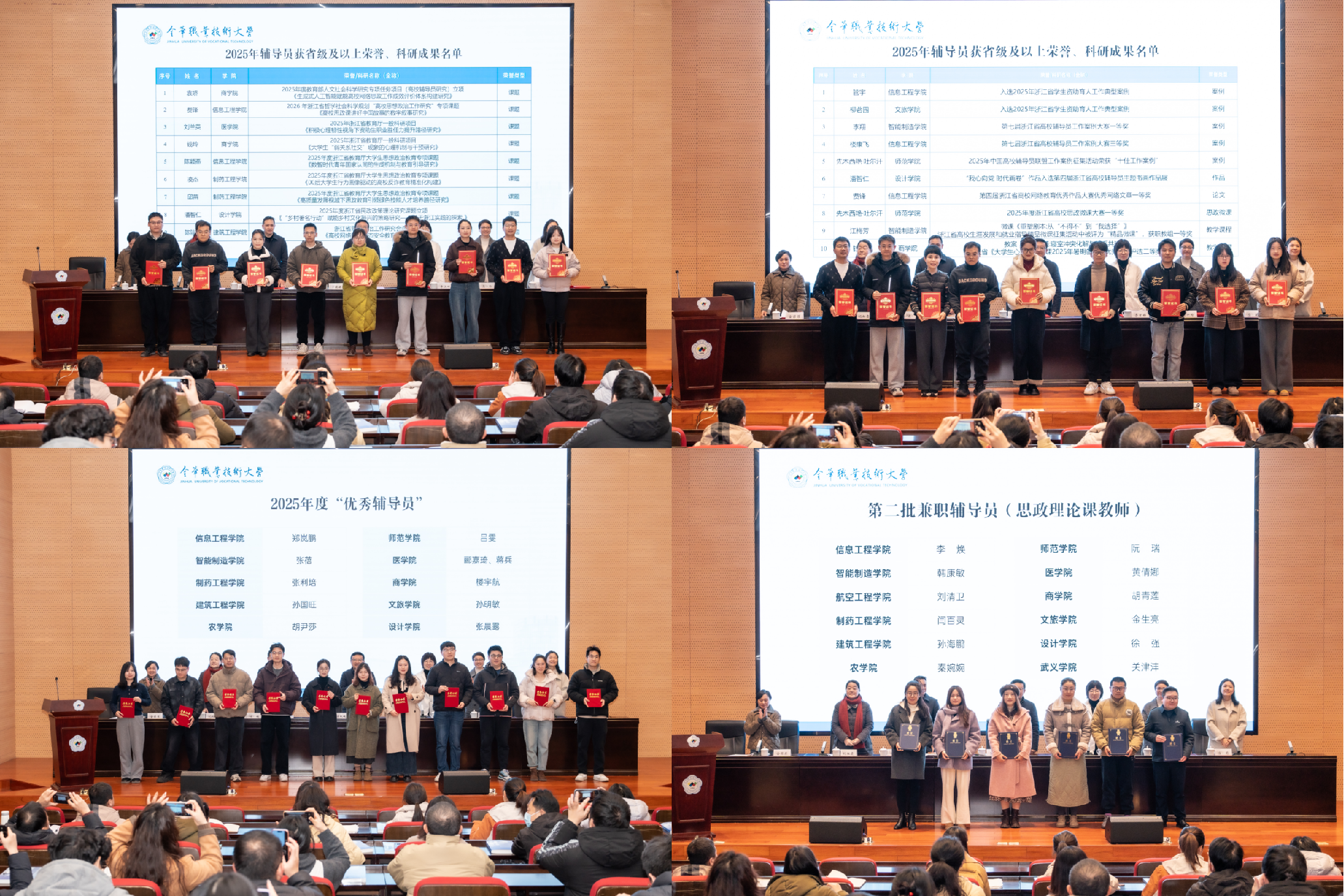 仪式在辅导员宣誓中拉开帷幕。随后,会议2025年度荣获省级及以上荣誉辅导员及校级优秀辅导员进行表彰,并为新聘任的兼职辅导员颁发聘书。医学院三级辅导员代表,结合一线工作实际“琐碎事务”里藏着的育人温度“双向奔赴”中彼此成长、“平凡坚守”里育人初心,三个维度分享了工作感悟。学工部负责人围绕“强基・赋能・共生”的主题,对本届辅导员节的系列活动与“金禾工程”第五期培训安排作了详细介绍。