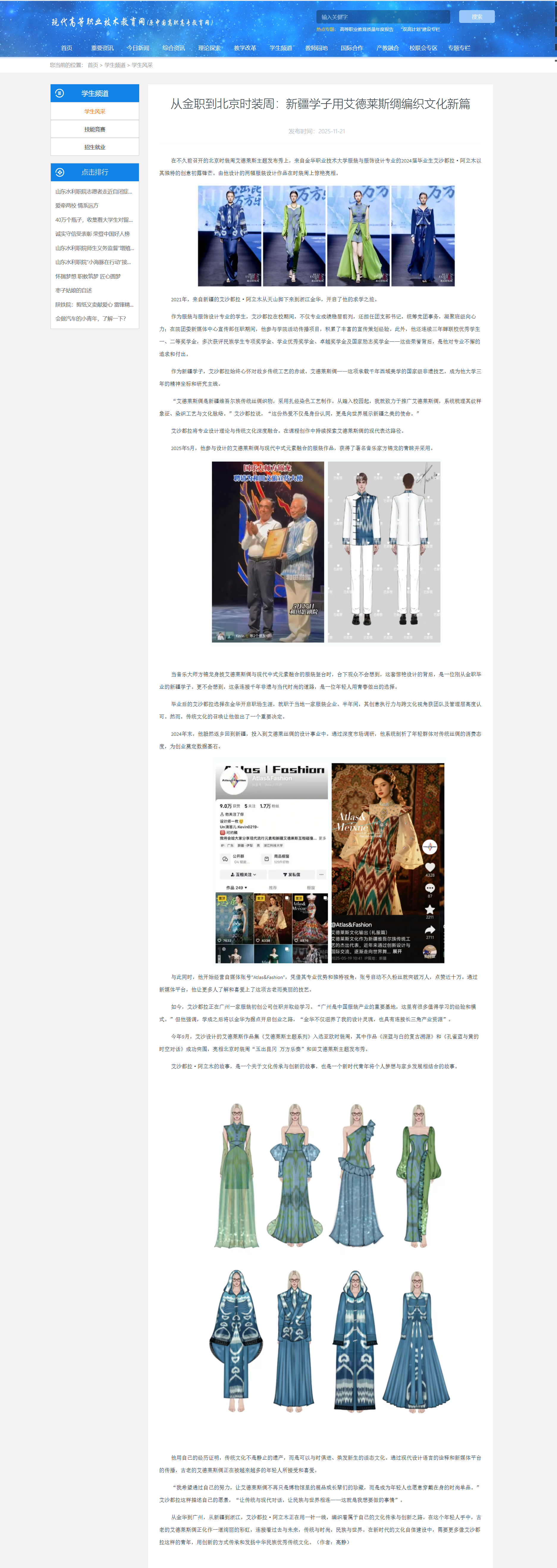现代高等职业技术教育网:从金职到北京时装周:新疆学子用艾德莱斯绸编织文化新篇