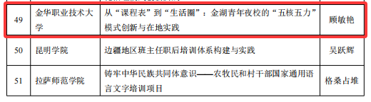 据悉,此次入选的两个项目分别聚焦学历与非学历继续教育的关键领域。其中,《基于“三维融合”的继续教育数字化资源共建共享模式的构建与实践》入选“学历继续教育教学改革创新任务”,着力破解资源壁垒,构建开放共享的数字化学习生态;《从“课程表”到“生活圈”:金湖青年夜校的“五核五力”模式创新与在地实践》入选“非学历教育改革创新任务”,致力于将学习嵌入社区生活,赋能青年全面发展。