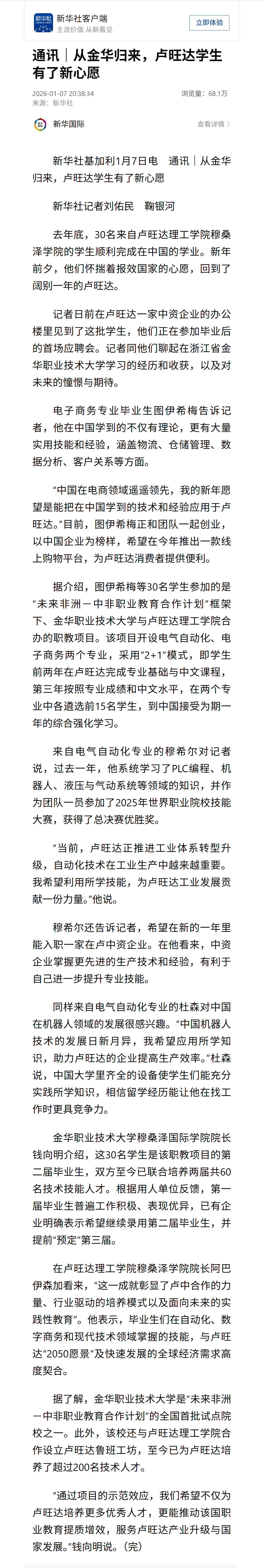 新华社:通讯|从金华归来,卢旺达学生有了新心愿