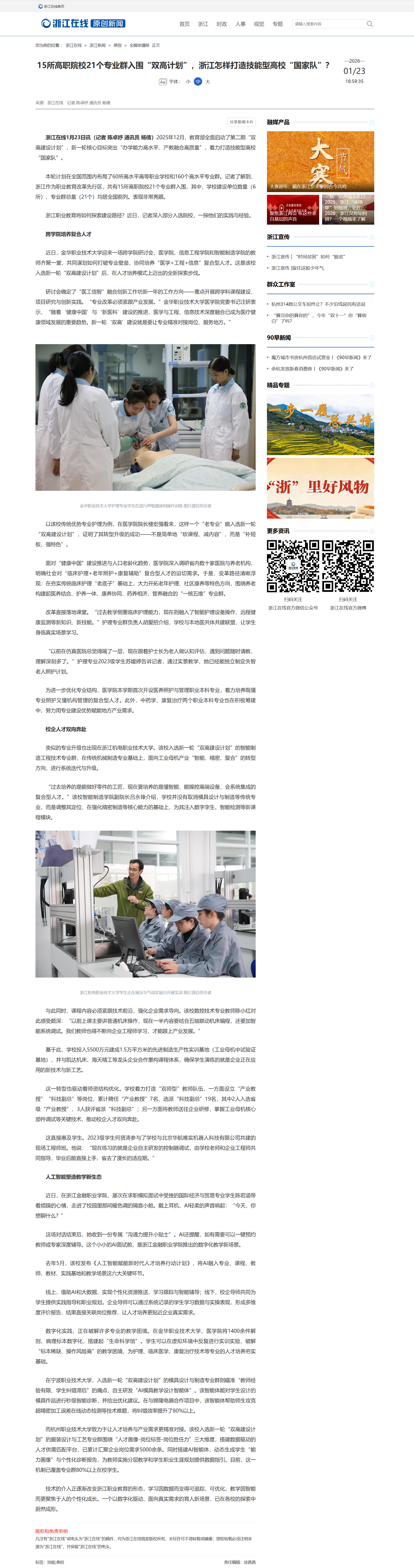 浙江在线:15所高职院校21个专业群入围“双高计划”,浙江怎样打造技能型高校“国家队”?