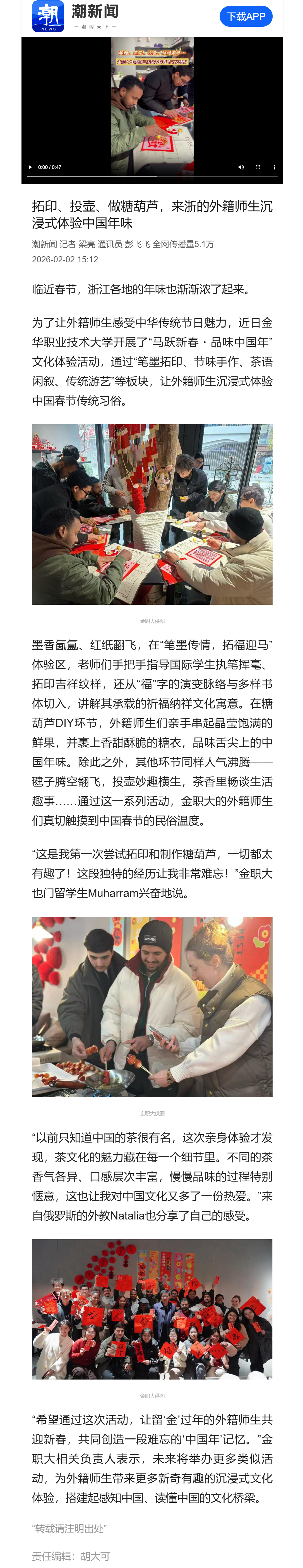 潮新闻:拓印、投壶、做糖葫芦,来浙的外籍师生沉浸式体验中国年味
