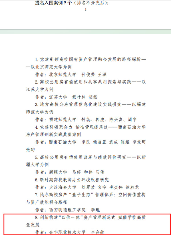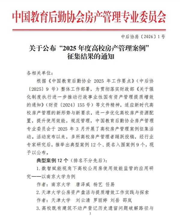 本次评选严格遵循“创新性、实效性、可复制性、示范引领性”四大核心标准,经多轮评审,最终在全国范围内评选出优秀典型案例12项、提名入围案例9项,为高校房产管理工作树立了实践标杆。