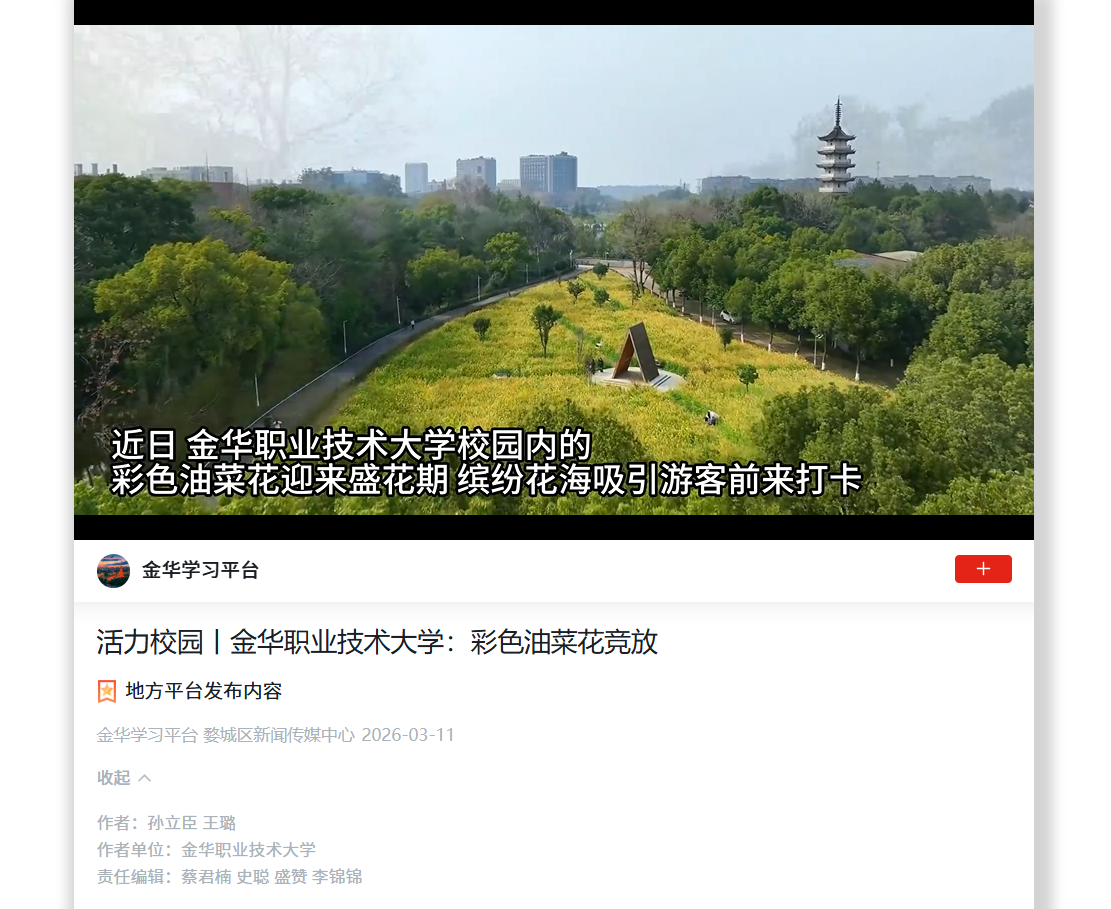 学习强国 金华学习平台:活力校园丨金华职业技术大学:彩色油菜花竞放