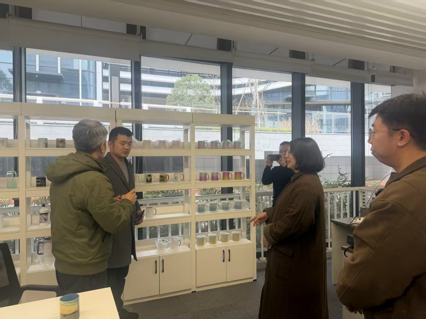 在企业相关负责人陪同下,调研团队参观了企业研创中心,重点考察了其“人、货、场”创业孵化模式及C2M(用户直连制造)智能研创平台。该企业依托数字化技术实现了个性化产品定制与柔性生产,这对商科人才培养模式的革新具有重要启示意义。通过引入C2M智能研创平台,商科学生不仅能够参与传统的营销环节,还有机会利用AIGC工具辅助产品设计,借助柔性供应链完成产品中试与打样,并通过平台数据进行市场洞察和精准推广,从而向产业价值链上游的研发设计与下游的营销服务等高附加值环节延伸。这种“AI设计-快速打样-电商销售-数据反馈”的完整闭环,为学生构建了从创意到市场的全流程实战环境。