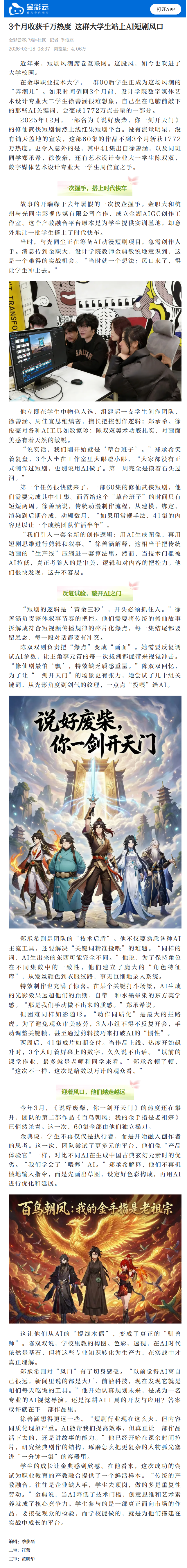 金彩云客户端:3个月收获千万热度 这群大学生站上AI短剧风口