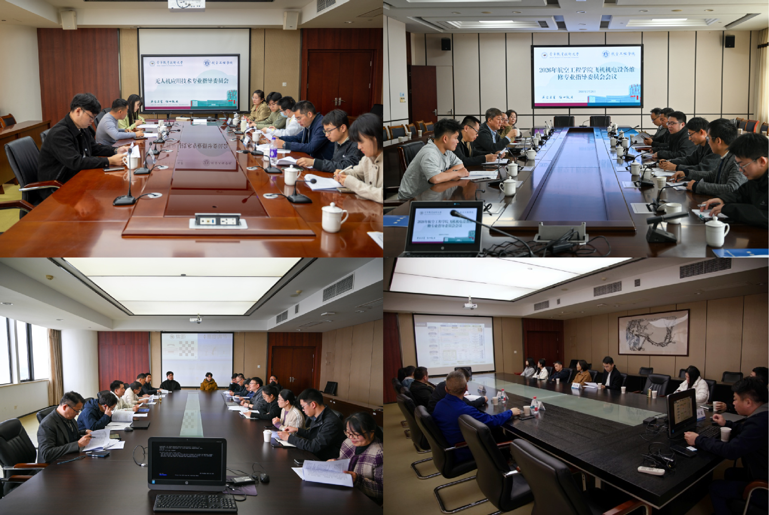 随后教学副院长介绍学院专业群架构、职业本科专业建设、及人才培养模式等情况。新能源汽车工程技术、航空智能制造技术、飞机机电设备维修、无人机应用技术的专业负责人依次汇报专业建设及人培修订思路。