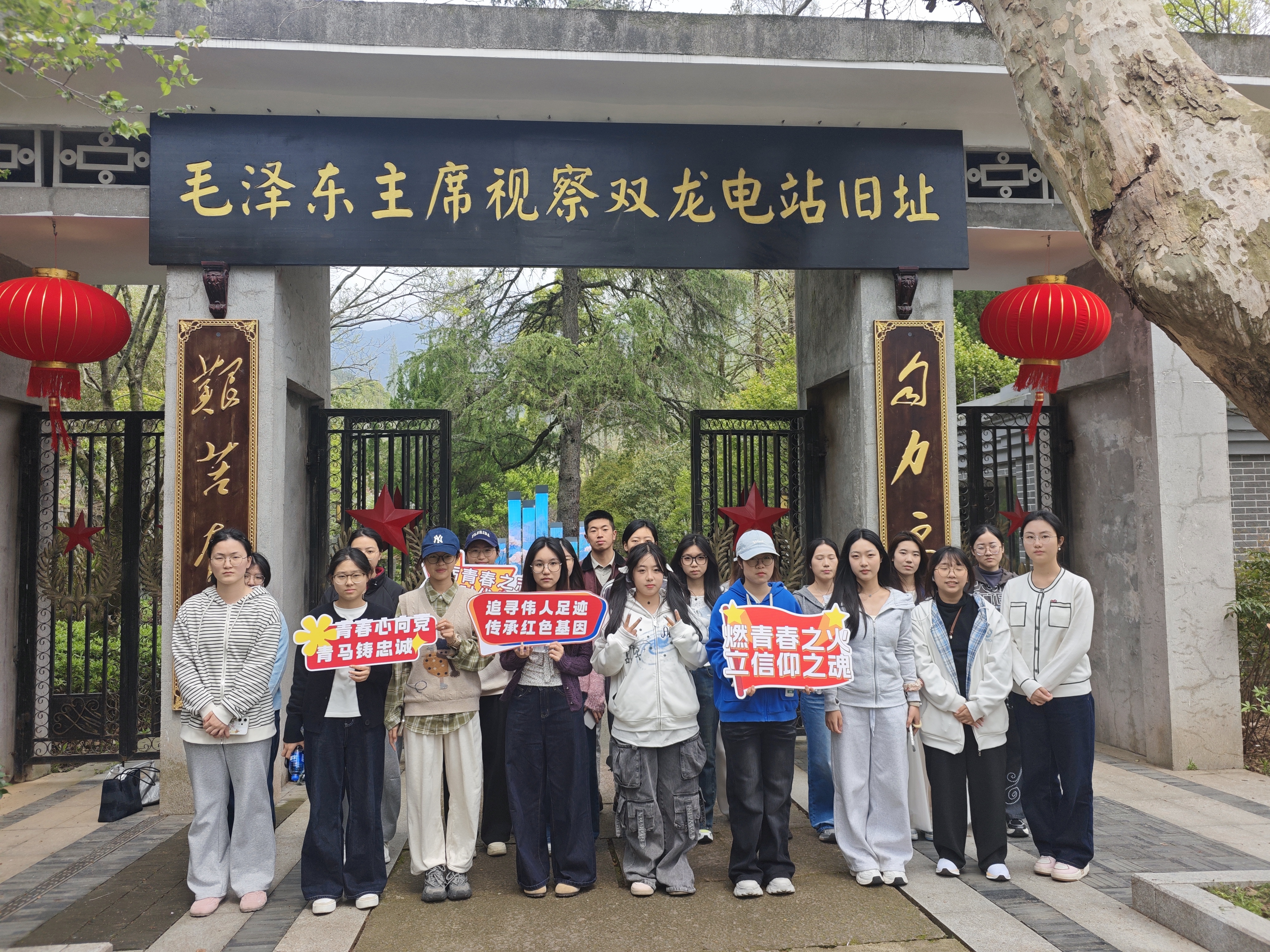 在双龙电站旧址,同学们怀着崇敬之情,认真参观了历史陈列馆和当年毛泽东主席视察时的原址。一幅幅珍贵的历史照片、一件件饱经沧桑的实物展品,生动再现了那段峥嵘岁月。大家驻足聆听讲解,深入了解双龙电站的建设历程以及毛泽东主席视察时的殷切嘱托,真切感受到老一辈革命家心系人民、深入基层的务实作风。“站在伟人曾经走过的地方,我仿佛能感受到那个火热年代的建设热情。”学生会组织部负责人旅游242班的钱可茹同学在现场感慨道。通过实地学习,同学们对红色精神的内涵有了更加深刻的理解,进一步坚定了听党话、跟党走的理想信念。