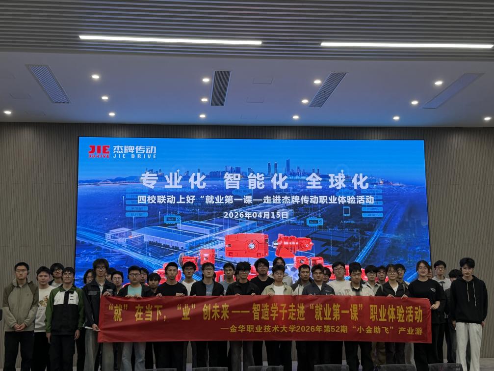 4月15日,在学校就业指导处支持下,智能制造学院组织相关专业学生代表,开展第52期“小金助飞”产业游,参与由浙江省职业介绍服务指导中心主办、萧山技师学院与杭州杰牌传动科技有限公司联合承办的“就业第一课”职业体验活动,通过沉浸式体验引导学生树立正确职业认知、提升就业核心竞争力。