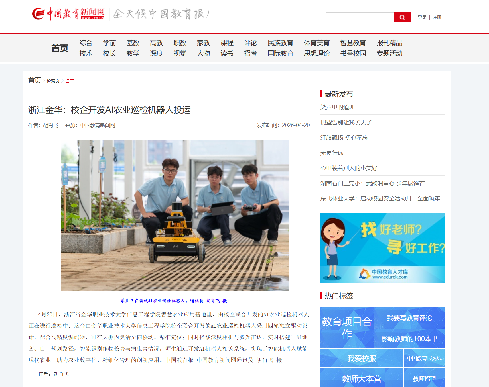 中国教育新闻网:浙江金华:校企开发AI农业巡检机器人投运