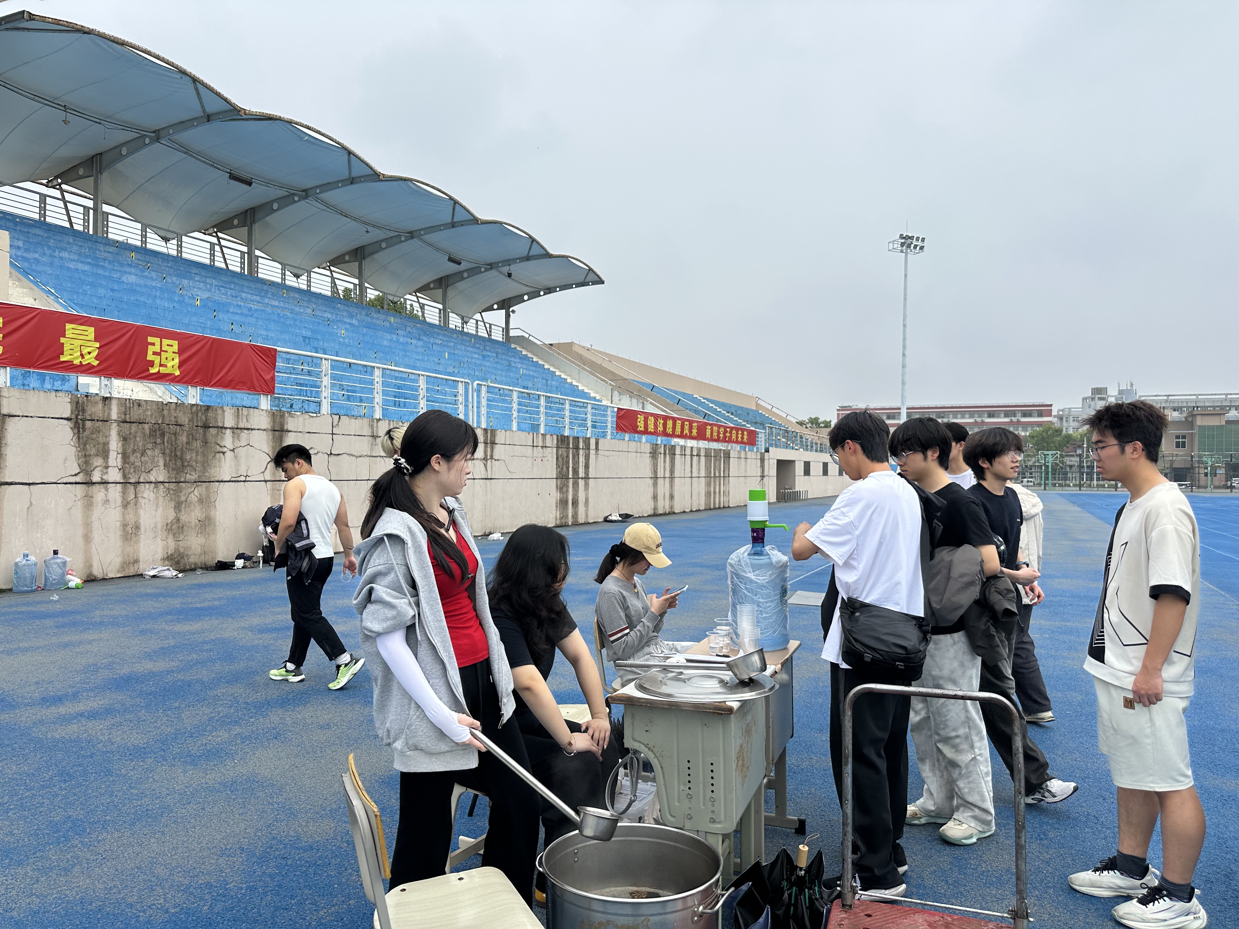 为确保训练有序高效开展,学校后勤部门、商学院、班主任团队等通力协作,筑牢备战保障防线。训练现场,商学院为学子们备好能量补给、金湖餐厅送来爱心姜茶、班主任一对一关切,让同学们在高强度训练中,充分感受温暖牵挂。