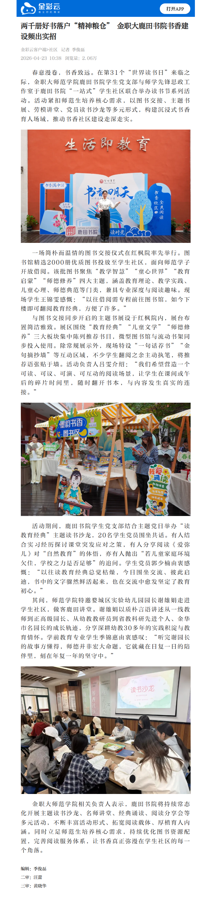 金彩云客户端:两千册好书落户“精神粮仓” 金职大鹿田书院书香建设频出实招