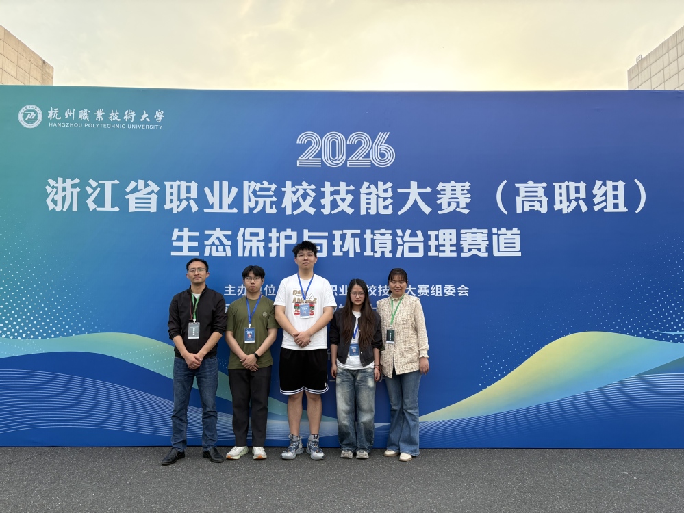 4月25日至27日,2026年浙江省职业院校技能大赛高职组生态保护与环境治理赛道在杭州职业技术大学圆满落幕。本次大赛汇聚全省15所高职院校的42支参赛队伍,150余名选手同台竞技。制药工程学院代表队凭借扎实的专业能力和稳定的赛场表现,一举夺得1金2铜的优异成绩,其中金奖团队在复评中荣获第2名。