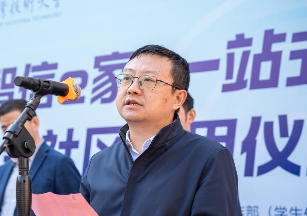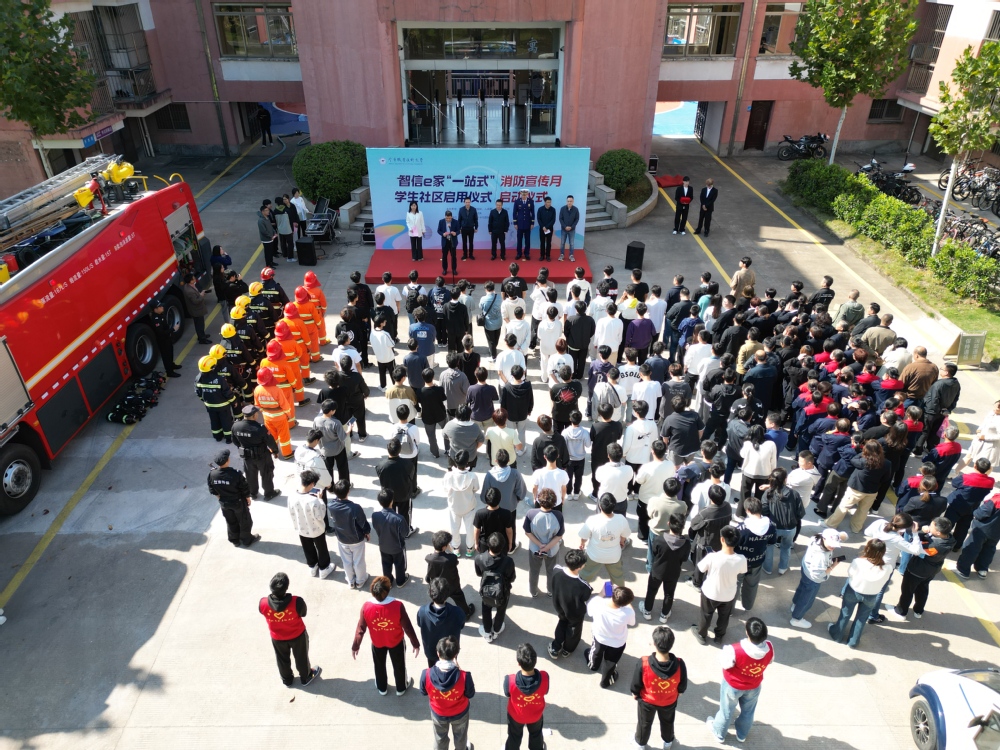 11月8日,学校智信e家“一站式”学生社区启用暨消防宣传月启动仪式在龙川北苑3幢前广场举行。开发区消防救援大队大队长韩斌、校党委副书记劳虓虓出席活动并致辞。