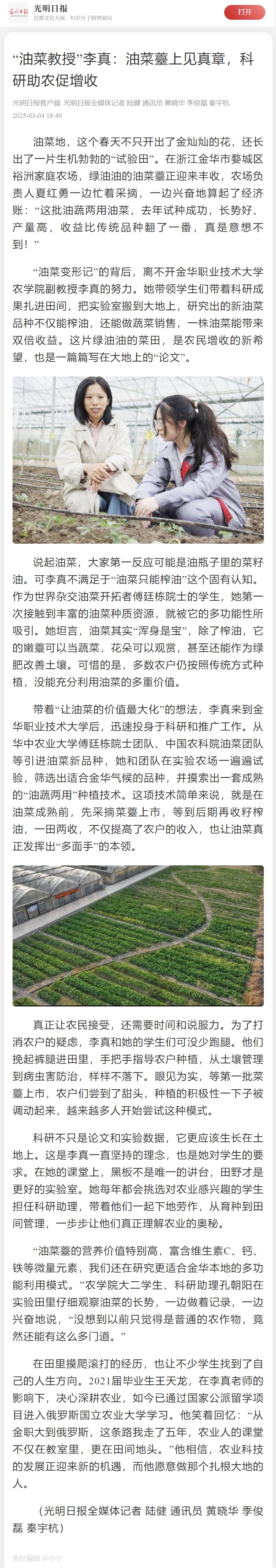 光明日报客户端:“油菜教授”李真:油菜薹上见真章,科研助农促增收
