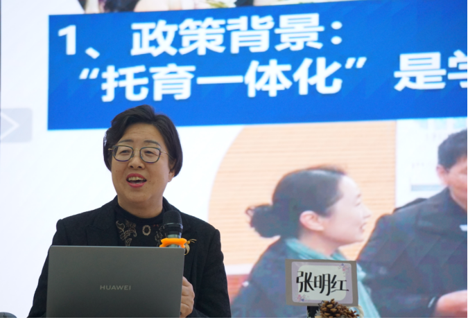 华东师范大学中国婴幼儿教养研究院研究员、中国教育学会学前教育专委会常务理事张明红做了《托幼一体化背景下的托班课程建设》主题报告,从“托幼一体化”的政策背景、托班教师专业发展存在的问题、托班课程建设面临的困难与挑战入手,利用真实的教养困惑,生动地阐述托班课程建构的理念与实施路径,为一线幼儿园教师提供了可学习、可借鉴的有效方案。