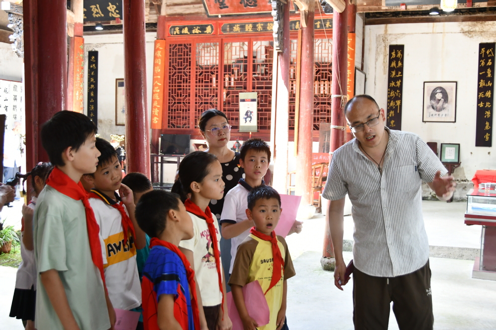 近日,文旅学院红旅党支部精心策划指导,联合武义县关工委、三港乡团委在武义三港乡詹蒙烈士祠为留守儿童组织开展沉浸式“历史课”活动。