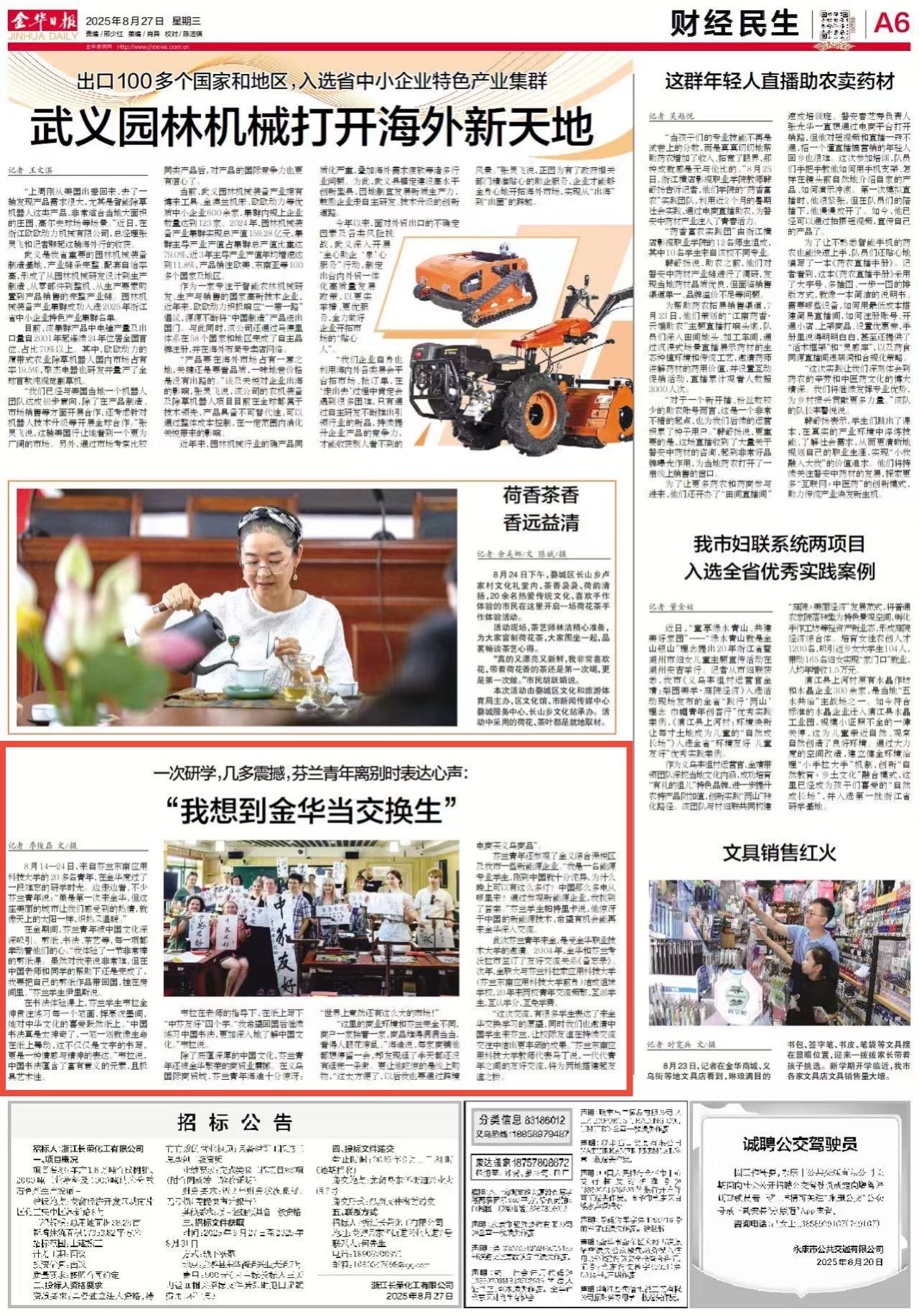 金华日报:一次研学,几多震撼,芬兰青年离别时表达心声: “我想到金华当交换生”