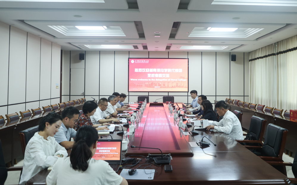 9月22日,越南河内学院董事长兼校长裴光盛一行5人访问金职大,就职业教育合作开展实地考察交流。