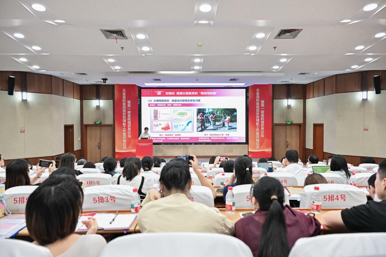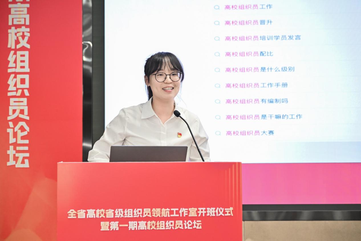 开班仪式后,第一期高校组织员论坛举行。金职大“四强”组织员培养对象金遥遥以《研·谋·创·鉴—将组织工作做到学生心里》为题进行了交流分享。她围绕高职院校学生党员发展与教育的系统困境,从“研准脉搏,锚定学生群体的‘成长坐标系’”“谋定路径,搭建分层教育的‘精准导航图’”“创新标尺,打造考核评价的‘透明度量衡’”“鉴往知来,提炼实践经验的‘成长启示录’”等四个维度出发,分享了高职院校学生党员教育管理的经验做法,展现了学校组织员队伍“实务能办、难题能解、品牌能创”的专业素养和精神风貌。