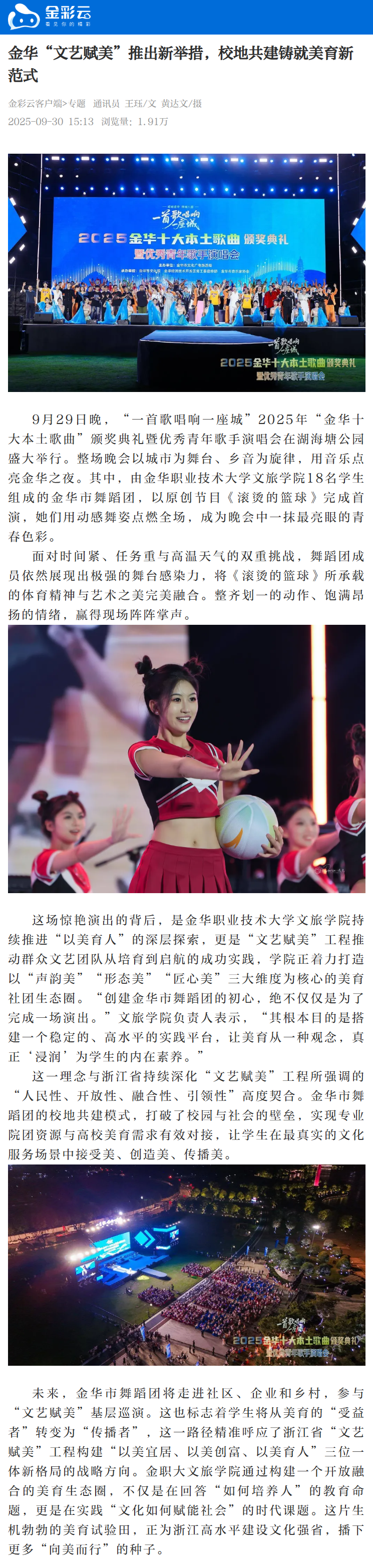 金彩云客户端:金华“文艺赋美”推出新举措,校地共建铸就美育新范式